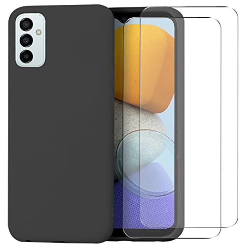 ISOI Cover per Samsung galaxy M23 5G/M13 4G Silicone 6.6 Pollici, con 2 Pellicola Vetro Temperato, Morbido Silicone Liquido Protezione, Antiurto Ultra-Sottile Protezione Custodia - Nero