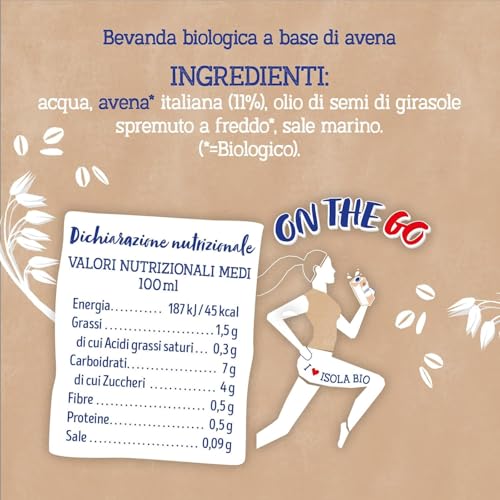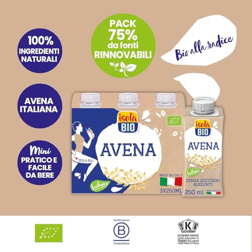 Isola Bio Avena On-The-Go Bevanda Vegetale Biologica Multipack, Pratica e Facile da Bere, 100% Ingredienti Naturali, per Vegani e Vegetariani, Formato 3x250ml