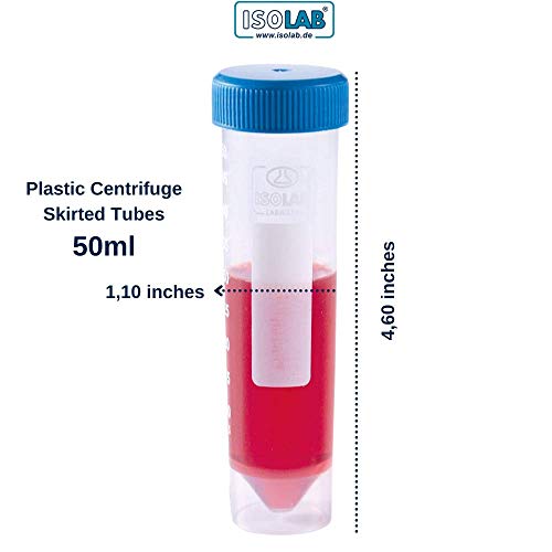 ISOLAB - Tubi centrifughi in plastica da 50 ml, confezione da 50, provette graduate con tappo a vite blu, autoportante, provette in PP per conservazione a freddo, fondo piatto