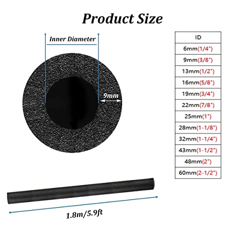 Isolamento del Tubo in Schiuma, 6mm- 60mm di Copertura del Tubo di Isolamento in Gomma Flessibile, Isolante per Tubature Ottimo per Tubo di Rame per Attrezzature da Palestra (Size: 22mm*9mm)