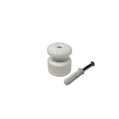 Isolatore/Isolatori in Porcellana/Ceramica per Cavi Trecciati. ø 30mm. Bianco. Confezione 6 Pezzi. VITI E TASSELLI INCLUSI