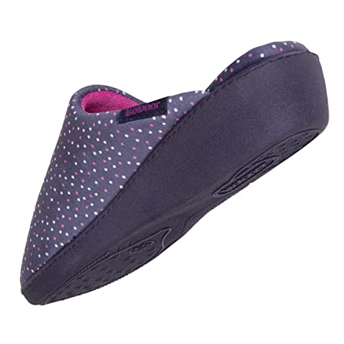Isotoner - Pantofole da donna, con fiocco, grana grossa, a pois, 39 EU