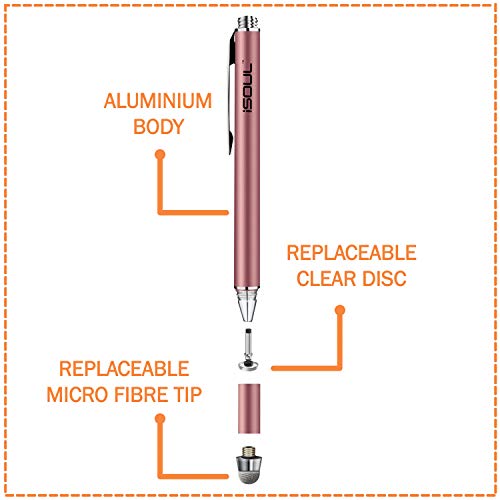 Design elegante avanzato: lo stilo con punta a pinna ISOUL è realizzato in alluminio massiccio. [Disco trasparente] Il disco fornisce flessibilità e precisione molto migliori, puoi vedere attraverso lo schermo dove esattamente stai puntando. Questo pennino ISOUL ti farà sentire più equilibrato e sostanziale quando scrivi o disegni. Punta morbida in microfibra: la punta in microfibra funziona esattamente come le dita, ma non lascia fastidiose impronte digitali o altro sporco sullo schermo. Non graffia lo schermo del dispositivo.