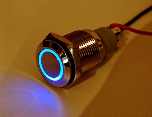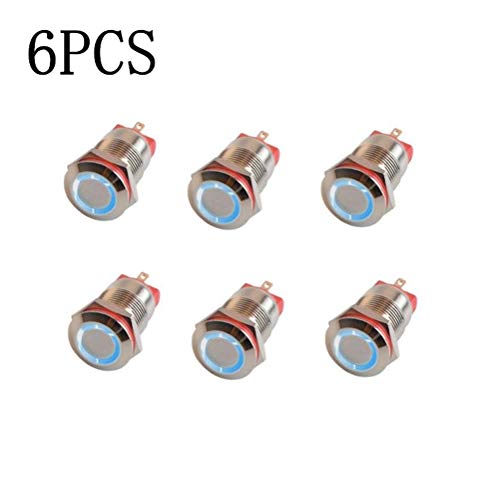 ISpchen 6PCS Pulsante di avvio con ripristino automatico da 12 mm, interruttore a scatto in metallo 12V / 24V con anello luminoso illuminato, impermeabile