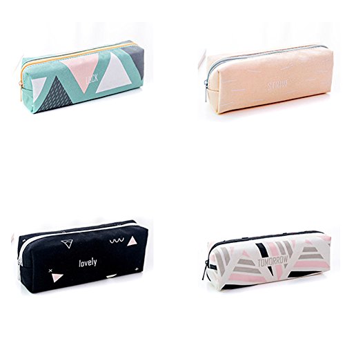 ISpchen Astuccio Zipper, Cancelleria Dell'allievo Di Modo Geometrico Serie Tela Matita Grande Capacità Scatola Di Matite Per La Scuola Bianca