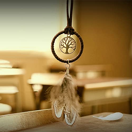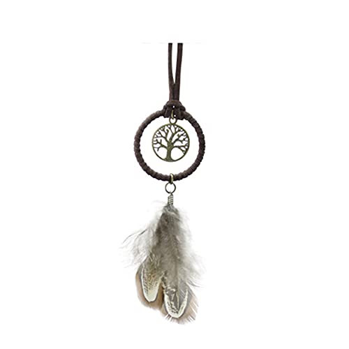 ISpchen Portachiavi da appendere con specchio per auto Accessori Albero della vita Ciondolo con piume Portachiavi per auto Portachiavi con nappe di piume Portachiavi con ciondolo regalo