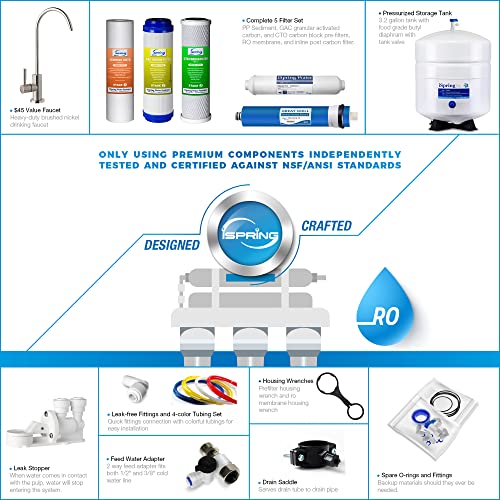 Sistema di osmosi inversa ad alta efficienza per acqua potabile più sicura, più sana e su richiesta. Questo filtro per l'acqua sotto il lavandino e il miglior addolcitore d'acqua rimuove fino al 99% di oltre 1.000 contaminanti e durezza, incluso piombo (rimuove fino al 98% di piombo), cloro, fluoruro, arsenico, ormoni, amianto, calcio, sodio e altro ancora.