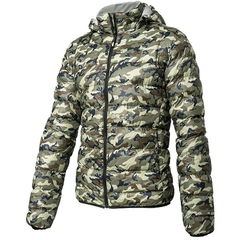 Mimetico. In 100% poliestere con interno ordito maglia tricot spazzolato. Tipo impermeabile, con cappuccio, due tasche a scomparsa ed elastico in vita. Adatto per lavori di agricoltura, giardinaggio, edilizia. Colore mimetico nella tonalità del verde e del marrone. CE rischi minimi.
