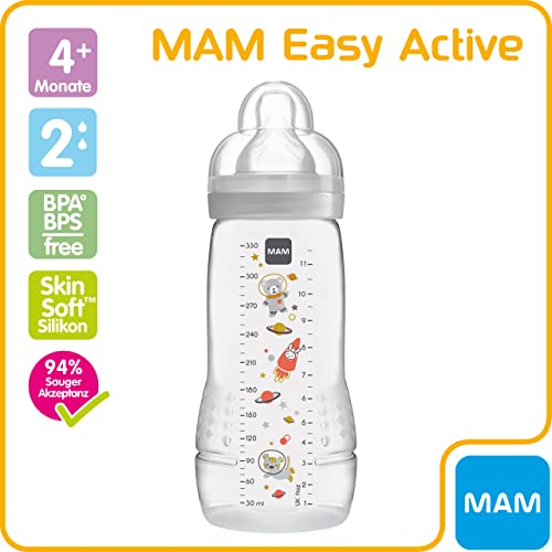 Design attivo: la borraccia MAM con la sua forma ergonomica è facile da tenere per neonati e genitori. Con i suoi motivi moderni è un vantaggio per ogni equipaggiamento per bambini