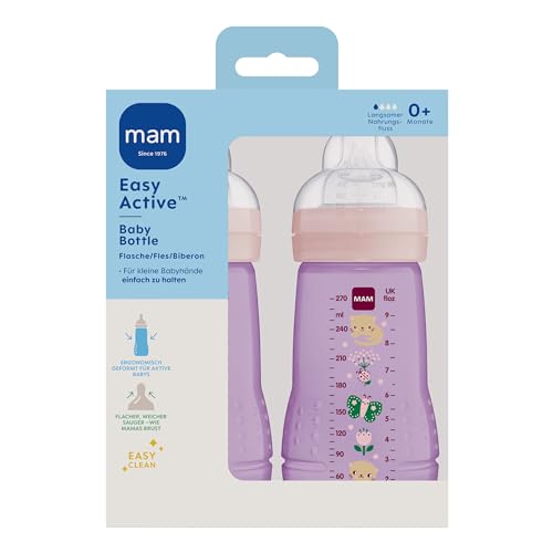 Istruzioni in lingua straniera - MAM Easy Active - Set di 2 bottiglie da 270 ml, con tettarella MAM, misura 1, in silicone SkinSoft, con forma ergonomica, 0 mesi e farfalle