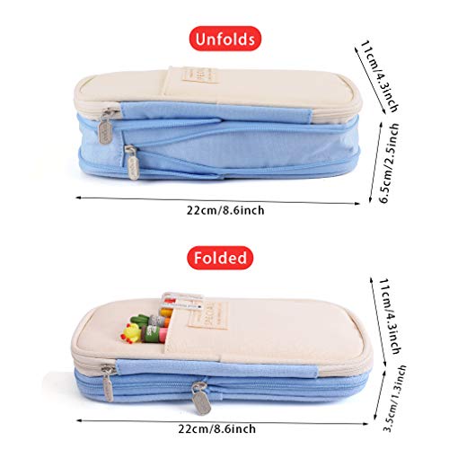 ISuperb Astuccio Matite Piccolo Scalabile Borsa di Cancelleria Matite da Custodia Tela Organizzatore Unisex 23 x 11 x 6,5 cm (Blu)