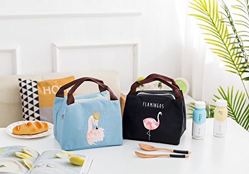ISuperb Borsa Termica Sacco per Il Pranzo Borsa Porta Pranzo Impermeabile Termico Lunch Bag Fenicottero Borsa Isolante Carina per Adulto e Bambini (Nero + Blu)