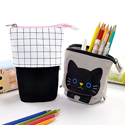 ISuperb 2 Pack Astuccio Pencil Case Portamonete Transformer Stand Pencil Holder Astuccio per Matite Portamatite Cartoleria Organizer per Bambini Adolescente Studente (Plaid grigio + bianco)