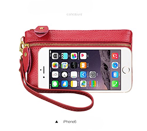 ISuperb Portamonete in Pelle Portafoglio Viaggio Coin Purse Leather Porta Carte di Credito per Donna e Ragazza 16.5×9.5 cm (Rosso)
