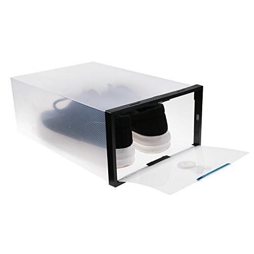 ISWEES 10 Scatole per Scarpe Trasparenti Pieghevoli Uomo/Donna in Plastica Solida a Coste,Salvaspazio Organizzatore Multifunzionale (Bianca + nero)