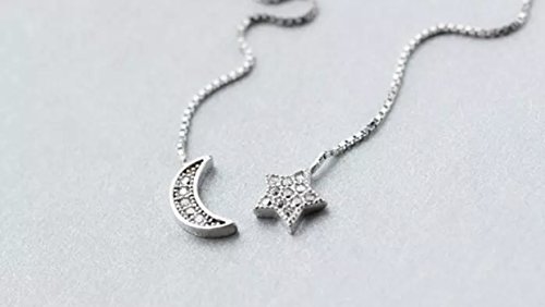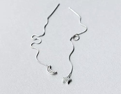 Iszie, orecchini lunghi a catenella, in argento sterling, con decorazione a luna e a stella