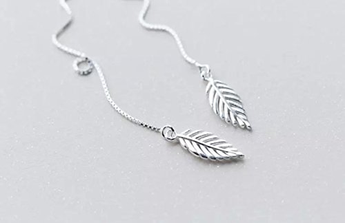 Iszie - Orecchini pendenti, ad ago, a forma di piccole foglie in argento sterling