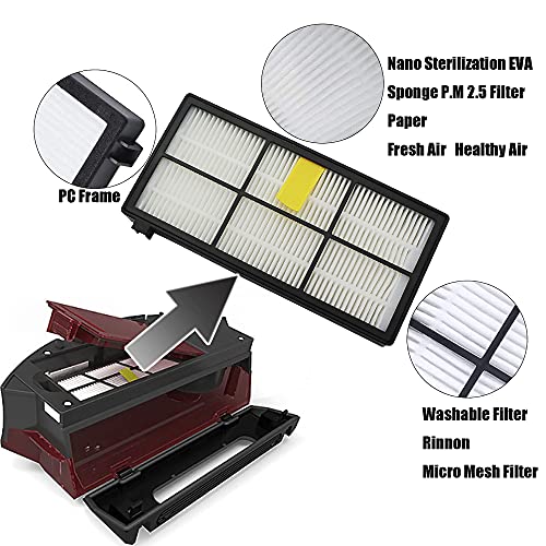 Italdos Kit di Ricambio comaptibile per iRobot Roomba 900 800 Serie (Spazzole Laterali, Filtri, Spazzola Rulli)