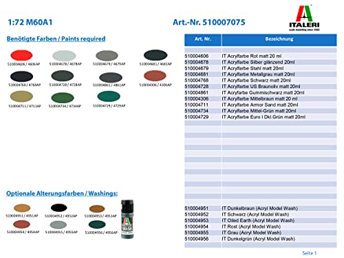 Italeri 7075 Modello in Plastica da Assemblare, Carri Armati, M60A1, Model Kit, Scala 1:72