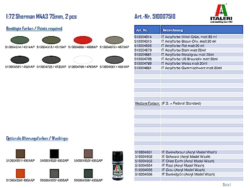 Italeri 7518 - M4a3 75mm Sherman - Fast Assembly (2 Pcs) Model Kit Scala 1:72