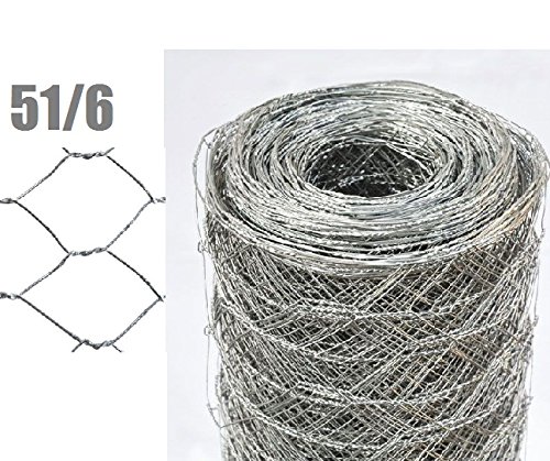 Italfrom 50mt-Rotolo Rete Metallica Zincata Tripla Torsione- Maglia:mm 51/6 -Diametro Filo:mm 1,1 - H 200 cm