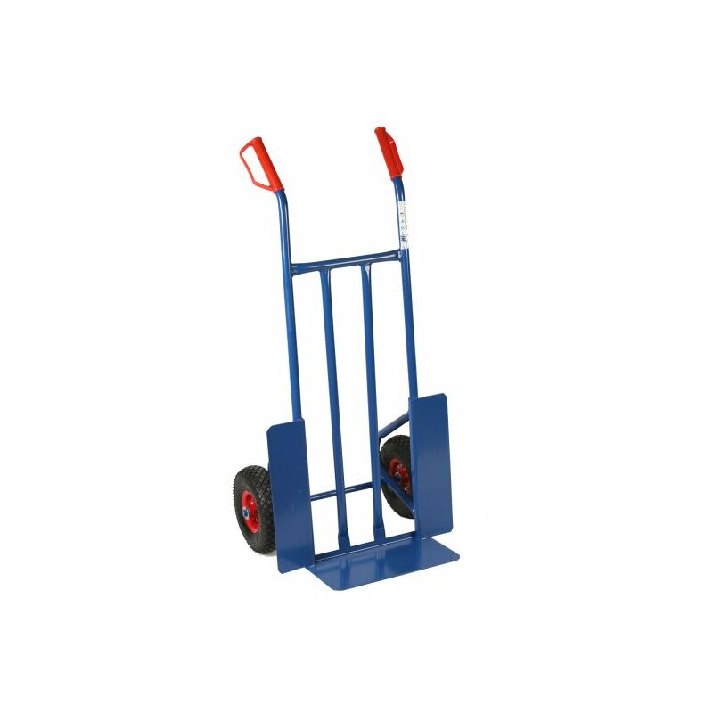 Carrello Doppio Manico Portata 80 kg HT100 Carrello doppio manico portata kg 80. Utilissimo per il trasporto di scatole, casse e bagagli. Maniglie con presa ergonomica in gomma rossa. Verniciato a forno con polveri epossidiche colore blu. Dotate di ruote in gomma piena, cm 20 x 4,5 Misure: cm 46 x 35 x h 100 Portata max Kg 80 Certificato.