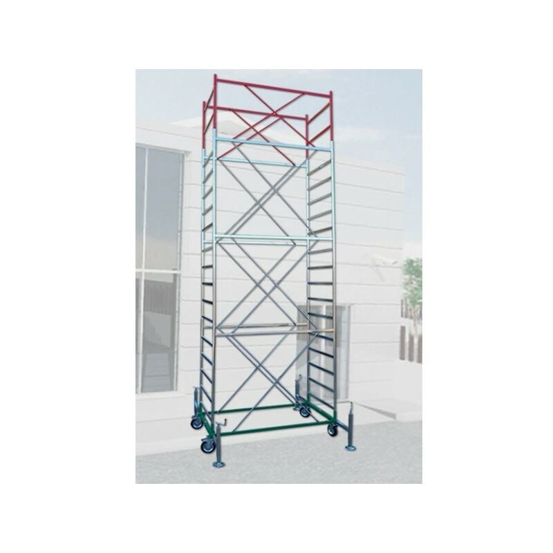 Trabattello Metal 6 / Metal 6 HD Varie Altezze Il trabattello professionale Metal 6 / Metal 6 HD nasce per tutti coloro che necessitano di svolgere lavori ad altezze elevate con la massima sicurezza. Il trabattello professionale Metal 6 � costruito in ferro zincato con gradini e orizzontali in tubolare da 40 x 15 montanti da 40 x 1,5 con innesti da 48 x 3 e diagonali zincate da 20 x 1,5. Ha una dimensione di base 2,00 x 1,15 mt e un'altezza che varia da 2,70 mt ad un'altezza massima di lavoro di 18,30 mt. BASE: 115 X 200 CM STRUTTURA: 108 X 182 CM PIANO DI LAVORO: 96 X 172 CM ALTEZZE DI LAVORO: DA 2,70 A 18,30 MT MODELLO M6270: Altezza lavoro 3,50 m Altezza ingombro 2,70 m Altezza max piano 1,55 m Componenti: 1 Base con ruote 1 Alzata da 120 cm completa 1 Parapetto terminale MODELLO M6390: Altezza lavoro 4,70 m Altezza ingombro 3,90 m Altezza max piano 2,75 m Componenti: 1 Base con ruote 2 Alzate da 120 cm completa 1 Parapetto terminale MODELLO M6510: Altezza lavoro 5,90 m