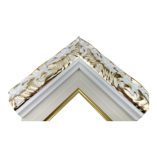 ITALIA CORNICI Maestri Artigiani - Cornice per Quadri su Tela con o senza Passepartout Personalizzabile Bianca Oro Antico (Bianco Oro Lucido, 80 x 100 cm + passepartout)