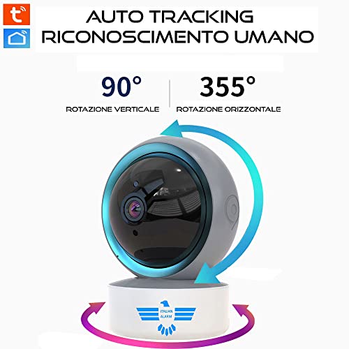 ITALIAN ALARM Telecamera WiFi FULL HD da interno x mod. FUTURA e TOUCH 4G, APP Tuya/Smartlife, LED x Visione Notturna a Colori Audio 2 Vie, Rileva Movimento & Autotracking + Notifica, Porta Micro SD