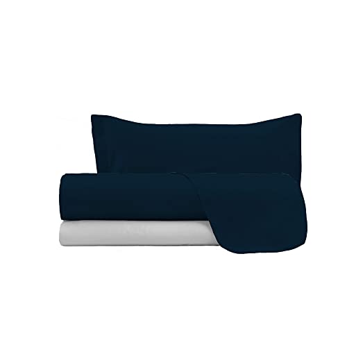 Italian Bed Linen Natural Color Completo Letto Doppia Faccia, 100% Cotone, Blu Scuro/Grigio Chiaro, Singolo, 3 unità
