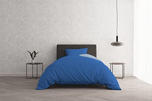 Italian Bed Linen Natural Color Parure Copri Piumino, 100% Cotone, Royal/Azzurro, Piazza e Mezza, 2 unità