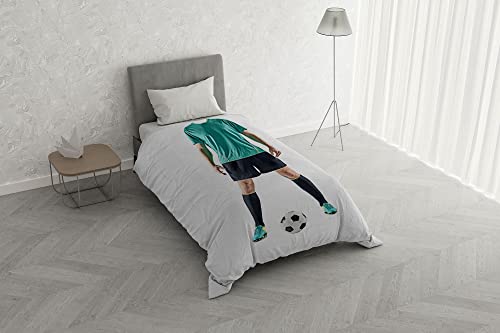 Italian Bed Linen Parure Copripiumino Kids Digital, Cotone, Calciatore Verde, 1 Posto