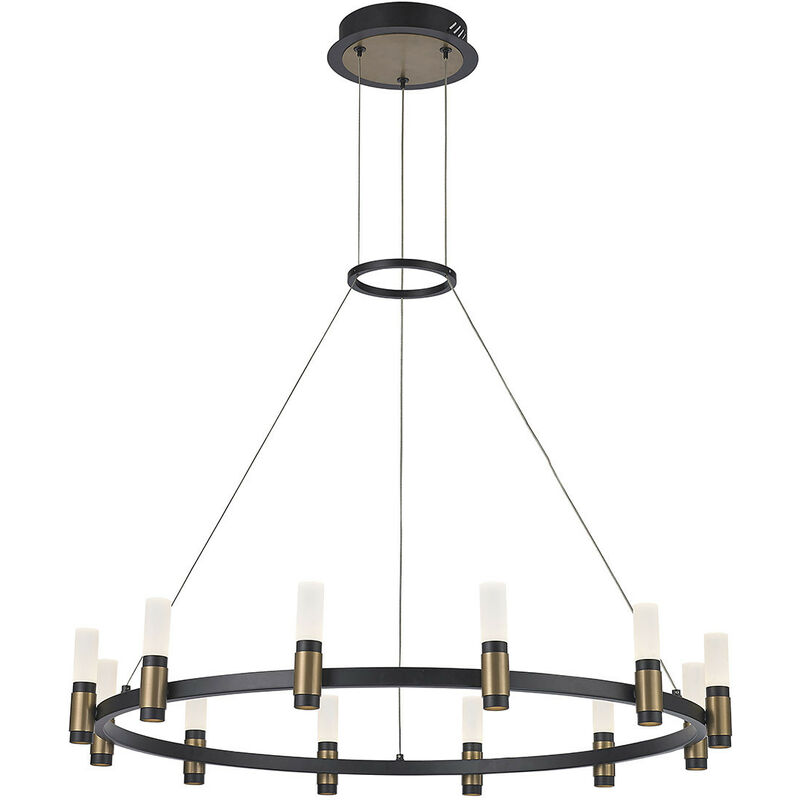 Italux Alamo Lampada da soffitto a sospensione a LED industriale, retro integrata, 3000K | Finitura: nero opaco, caffè spazzolato | Materiale: acciaio, alluminio, vetro | Classificazione IP: IP20 | Diametro: 81 cm | Dimmerabile: No | Kelvin: 3000K - Bianco caldo | Lumen: 1920lm | Potenza (massima): 48W