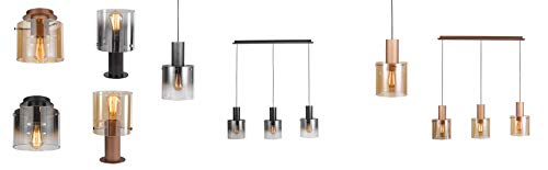 Italux Javier - Sospensione moderna a sospensione nera, 3 luci fumé con paralume in vetro, attacco E27