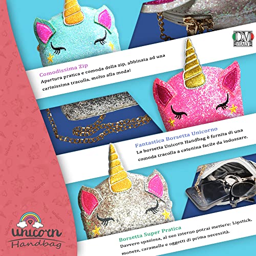 Dm italy, borsetta bambina unicorno con tracolla, borsa bambina unicorno Glitterata vari colori (acquamarine)