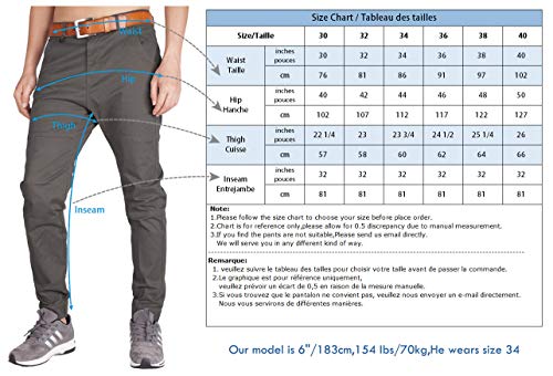 Lunghezza regolare, polsini elasticizzati, cintura con passanti per cintura, tasche laterali, tasche posteriori e chiusura con bottone e zip. Cavallo leggermente basso e vestibilità affusolata che è più e c'è più spazio per cosce e gambe;