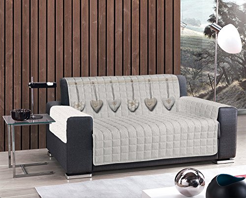 ITALYSWEETHOME SALVAPOLTRONA COPRIPOLTRONA Trapuntato Cotone 1 POSTI Seduta 60-65 CM Cuori APPESI Beige