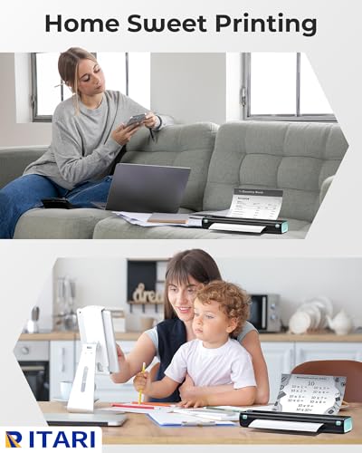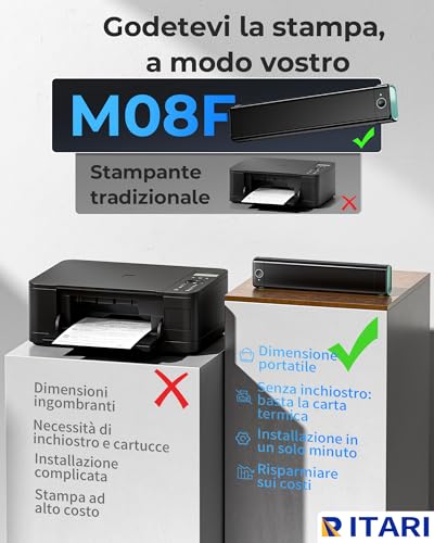 Itari M08F Stampante Portatile,Stampante Termica Supporto A4, Mini Stampante Portatile, Stampa Mobile Senza Internet e Inchiostro, Stampante Termica Portatile Compatibile con Telefoni e Laptop