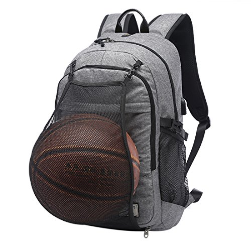 ITECHOR multifunzione Zaino Pallacanestro 15.6 pollici con rete di pallacanestro Caricatore USB - Grigio