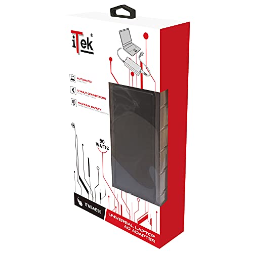 Itek Alimentatore Universale per Notebook 90W con 12 connettori, 100/240VAC, 15/20VDC, Nero