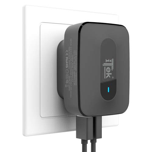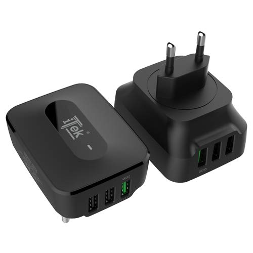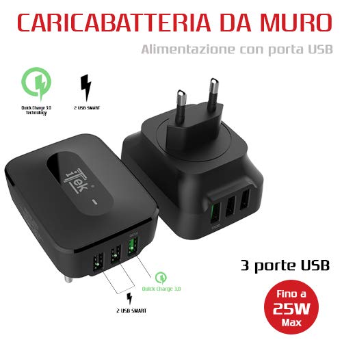ITEK Caricabatteria da muro da 25W, 7. 8A(2x2.4A, 1x3A) con 3 porte: 2xUSB Smart, 1xQC3.0, Smart IC