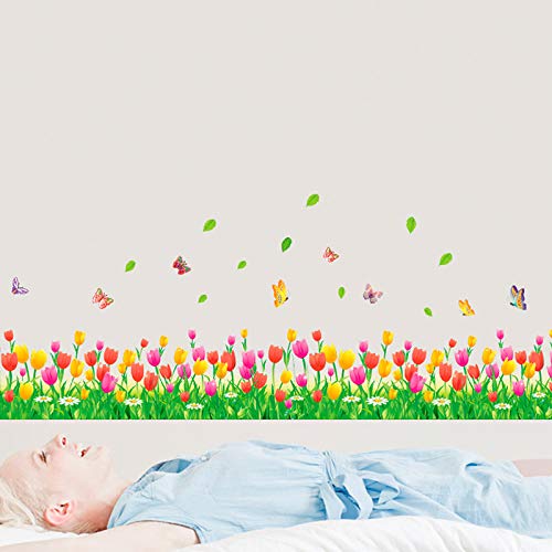 ITemer. Adesivi da Muro Serie, 1x Colorato Tulipano Adesivo da Parete Rimovibile per Il Zoccolo di Soggiorno Camera da Letto o Scuola Materna Murali Arts con Farfalla per Il Vasca da Bagno 114x40cm