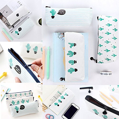 ITemer, astuccio per penne, portamonete o cancelleria, con cerniera, motivo cactus, confezione da 3