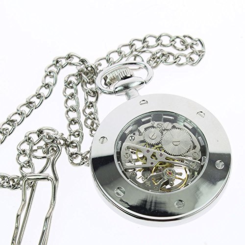 Itemstoday uomo Archaize Steampunk argento orologio da tasca meccanico con catena scheletro Open Face