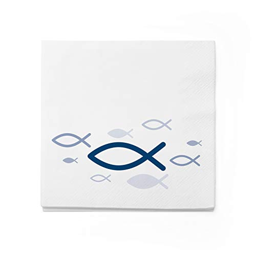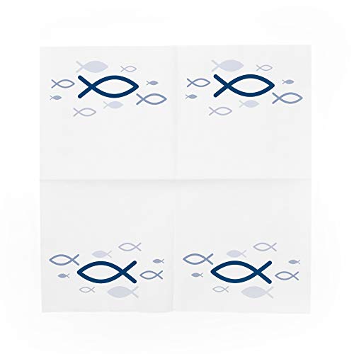 Itenga Tovaglioli Carta Pesce 33x33 cm 3 Veli 20 Pezzi per Battesimo Comunione Cresima Ragazzi e Ragazze (Blu)