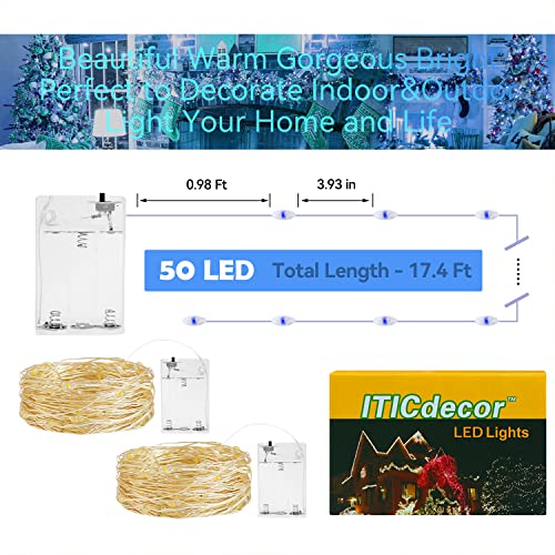 [2 pezzi 50 luci a LED]: ogni catena luminosa decorativa in filo di rame è di 5 m con 50 LED, la distanza tra i LED è di 10 cm, ideale per camera da letto, matrimonio, festa, compleanno, Halloween, Natale, decorazione di Capodanno.