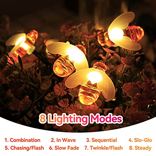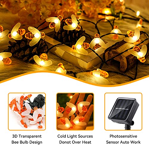 [50 LED bianchi caldi a forma di ape] La luce solare a forma di ape è dotata di 50 LED bianchi caldi a forma di ape. La distanza tra 2 LED è di 15 cm e il filo della coda è di 2 metri