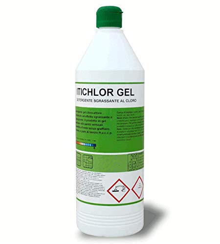 DETERGENTE PROFESSIONALE Detergente gel cloro-attivo profumato ad effetto sgrassante e igienizzante. Il prodotto in gel aderisce alle pareti verticali pulendo a fondo senza graffiare. Idoneo ai piani di lavoro H.a.c.c.p. Campi d'impiego: cucina, piani di lavoro, attrezzature, bagni, lavelli, wc, pavimenti. Modo d'uso: Per piccole superfici o sporco difficile versare il prodotto puro, strofinare con un panno o spugna umida, risciacquare. Per pulizie ordinarie e grandi superfici diluire il prodott