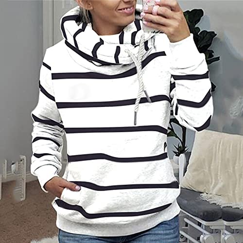 ITISME Felpa Donna Stampa a Righe Tinta Unita Moda Felpe Donne con Cappuccio Manica Lunga Collo Alto Casual Elegante Hoodies Ragazza Manica Lunga Colore Cuciture Classic Pullover Sweatshirt con Tasca