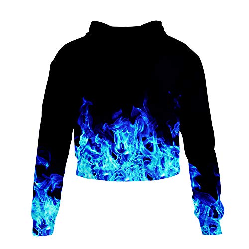 Itresty Felpa con Cappuccio Crop Top Hoodie Maniche Lunghe Donna Pullover Cropped Felpe Corte Fiamma Stampato Shirt Camice Maglia Hooded Sweatshirt Casual